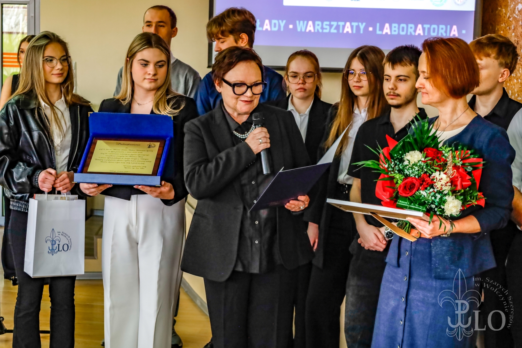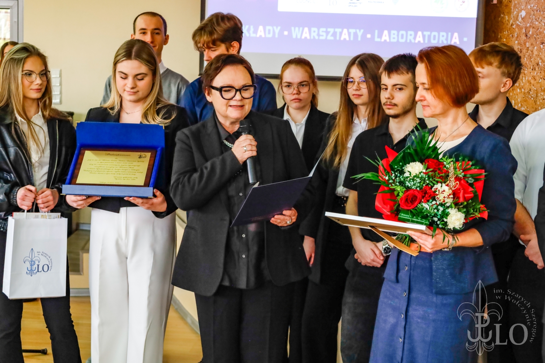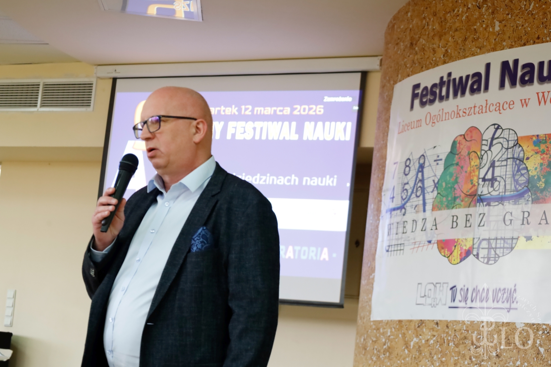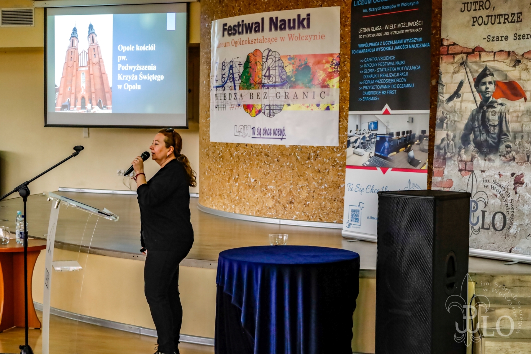 Festiwal Nauki otworzyła Dyrektor szkoły Ewa Włos, która oficjalnie przywitała przybyłych na uroczystość, nakreśliła historię festiwalu. Po słowach wstępu prowadzący zapowiedzieli jeden z najważniejszych momentów tegorocznego festiwalu, a mianowicie podsumowanie współpracy klasy patronackiej IV a LO w Wołczynie z Politechniką Opolską. Rozpoczęła się ona w 2023 i trwała do 2025 roku. Koordynatorem ze strony LO była Pani Franciszka Łęczyńska, a Politechniki Anna Chwastyk. Uczestniczka projektu Wiktoria Sroka przedstawiła przebieg współpracy, główne założenia i korzyści wynikające z bytności uczniów LO w progach wyższej uczelni. Całość uświetniła prezentacja wykonana przez uczniów klasy patronackiej. Po pamiątkowym zdjęciu nadszedł czas na panel wykładowy.