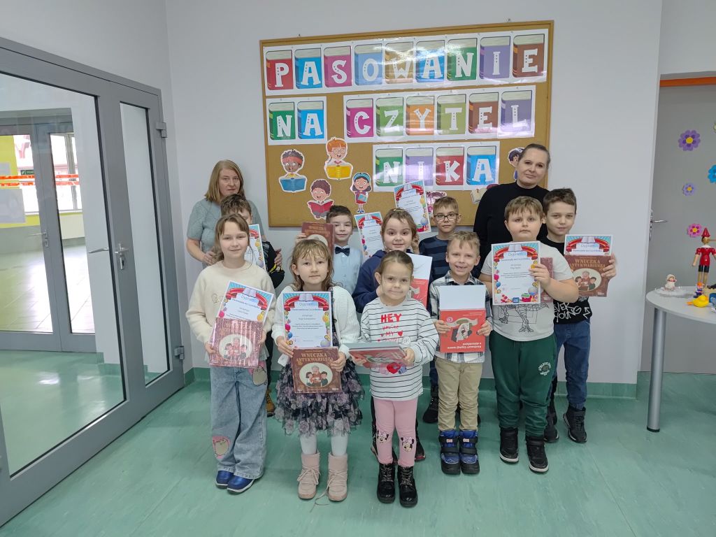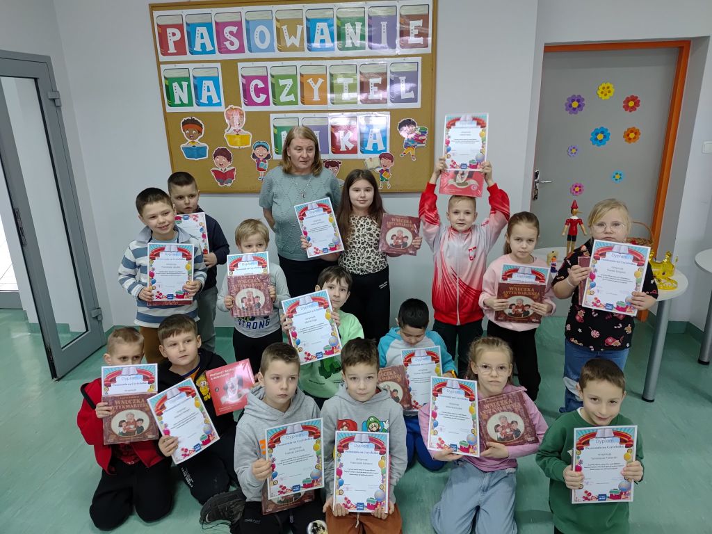 W dniu 30 stycznia 2026 r. w bibliotece szkolnej odbyła się uroczystość Pasowania na Czytelnika uczniów klas pierwszych Szkoły Podstawowej w Wołczynie. Pierwszaki pojawiły się w bibliotece z nauczycielkami: panią Małgorzatą Kiepurą, panią Alicją Kanią i panią Anną Nitą. Dzieci wykazały się znakomitą znajomością baśni i bajek i były bardzo aktywne w trakcie spotkania. Nieobce okazały się dla nich przygody baśniowych bohaterów. Podczas uroczystości uczniowie dowiedzieli się, o co proszą książki i dlaczego warto je czytać. Na koniec każdy uczeń otrzymał pamiątkowy dyplom i książkę. Podczas uroczystości towarzyszyła nam miła i radosna atmosfera.