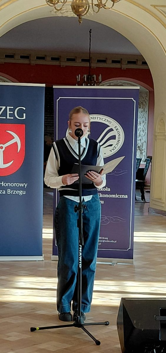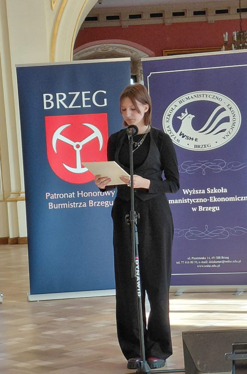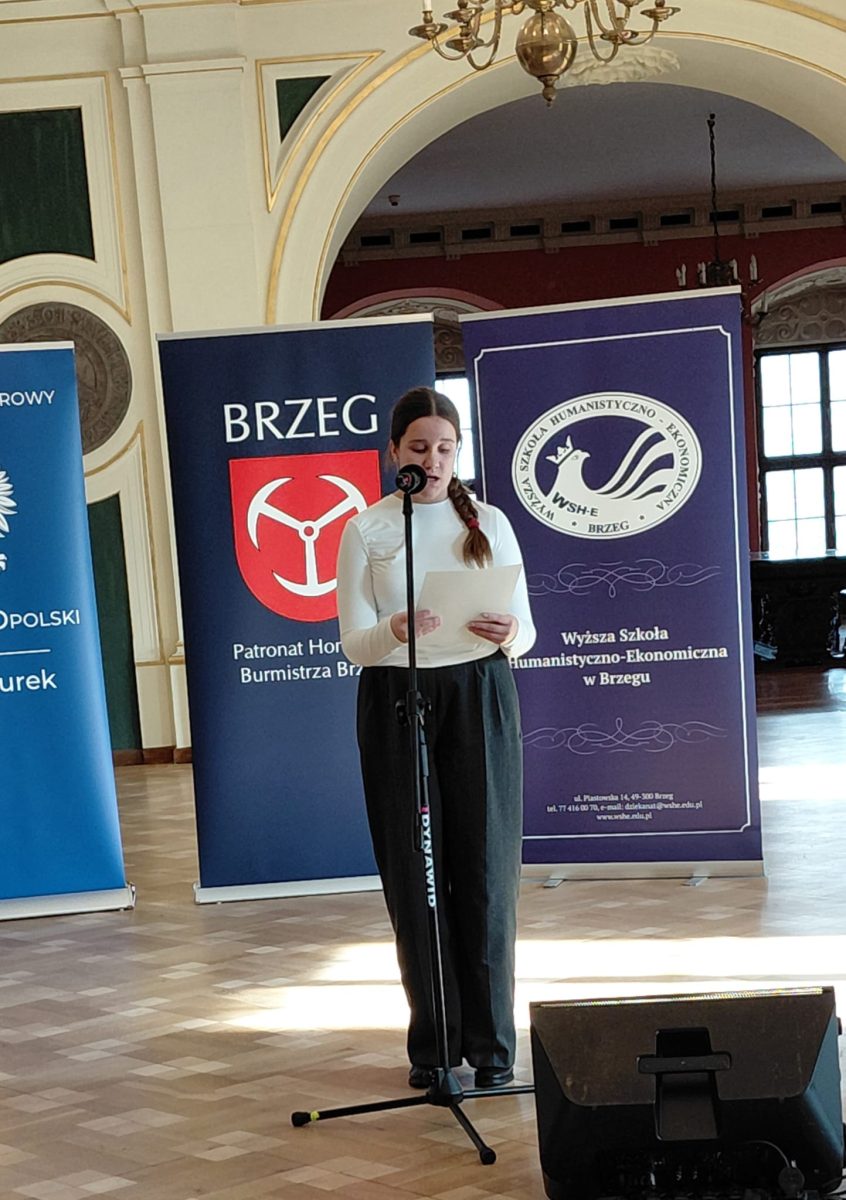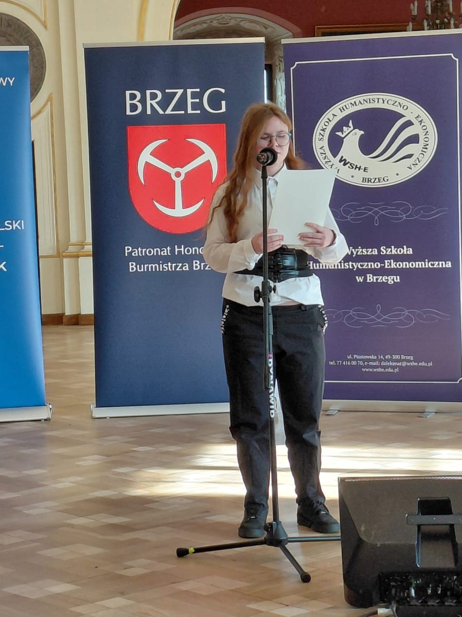 5 listopada reprezentantki naszej szkoły, zarówno podstawowej jak i liceum, wzięły udział w Zamkowym Turnieju Poetyckim im. Janusza Wójcika. Spotkanie miało miejsce w murach Zamku Piastów Śląskich w Brzegu. Tegoroczna edycja odbyła się pod hasłem „Bunt i tolerancja”. Tematyka zachęcała młodych twórców do refleksji nad tym, co naprawdę kształtuje postawy młodych ludzi wobec siebie samych i świata.